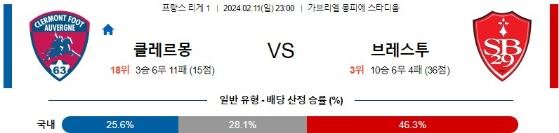 [킹콩티비] 클레르몽 브레스트 분석 2월11일 리그1 스포츠중계
