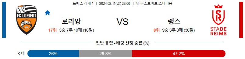 [킹콩티비] 로리앙 랭스 분석 2월11일 리그1 스포츠중계