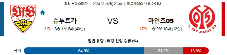[킹콩티비] 슈투트가르트 마인츠 분석 2월11일 분데스리가 스포츠중계
