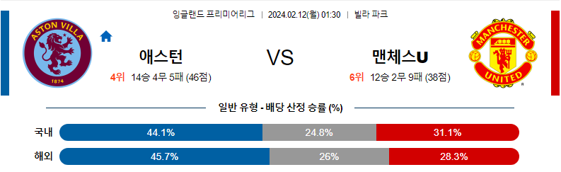 [킹콩티비] 애스턴빌라 맨유 분석 2월12일 EPL 스포츠중계