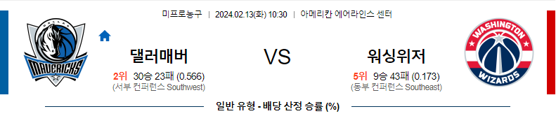 [킹콩티비] 댈러스 워싱턴 분석 2월13일 NBA 스포츠중계