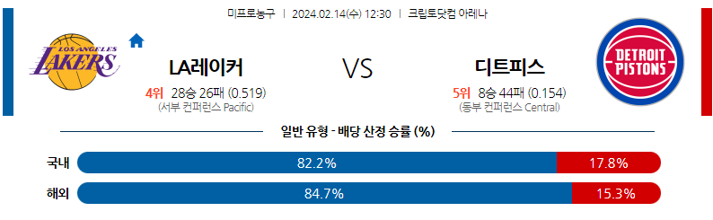 [킹콩티비] LA레이커스 디트로이트 분석 2월14일 NBA 스포츠중계