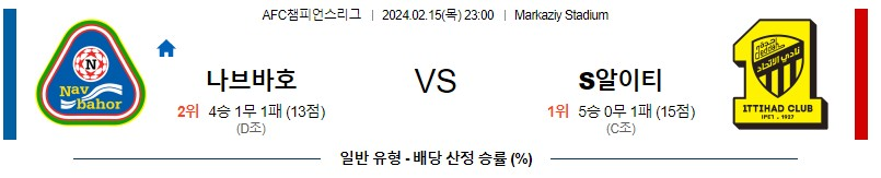 [킹콩티비] 나브바호르 알이티하드 분석 2월15일 AFC챔스 스포츠중계