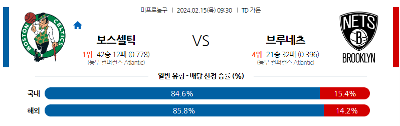 [킹콩티비] 보스턴 브루클린 분석 2월15일 NBA 스포츠중계