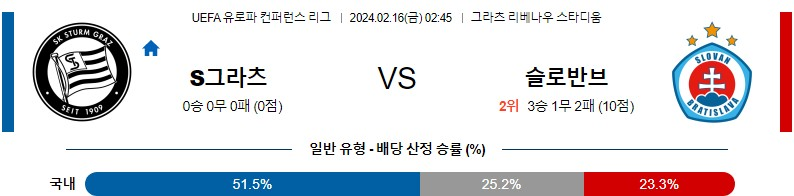 [킹콩티비] 슈투름그라츠 브라타슬라바 분석 2월16일 유로파컨퍼런스 스포츠중계