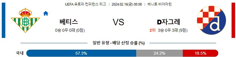 [킹콩티비] 베티스 자그레브 분석 2월16일 유로파컨퍼런스 스포츠중계