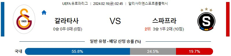 [킹콩티비] 갈라타사라이 스파르타프라하 분석 2월16일 유로파 스포츠중계