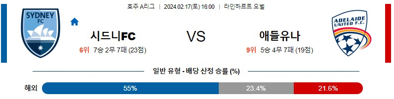 [킹콩티비] 시드니 애들레이드 분석 2월17일 A리그 스포츠중계