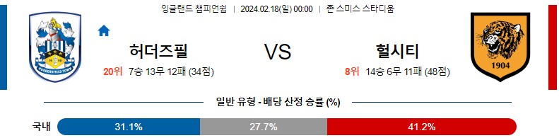 [킹콩티비] 허더즈필드 헐시티 분석 2월18일 챔피언쉽 스포츠중계