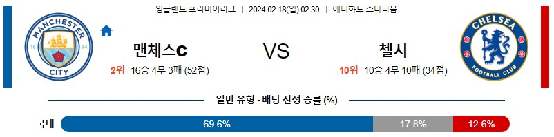 [킹콩티비] 맨시티 첼시 분석 2월18일 EPL 스포츠중계