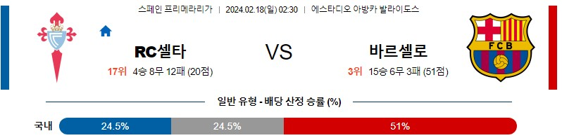 [킹콩티비] 셀타비고 바르셀로나 분석 2월18일 라리가 스포츠중계