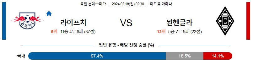 [킹콩티비] 라이프치히 묀헨 분석 2월18일 분데스리가 스포츠중계