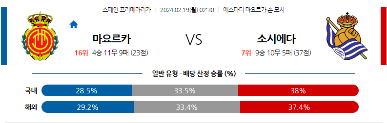 [킹콩티비] 마요르카 소시에다드 분석 2월19일 라리가 스포츠중계