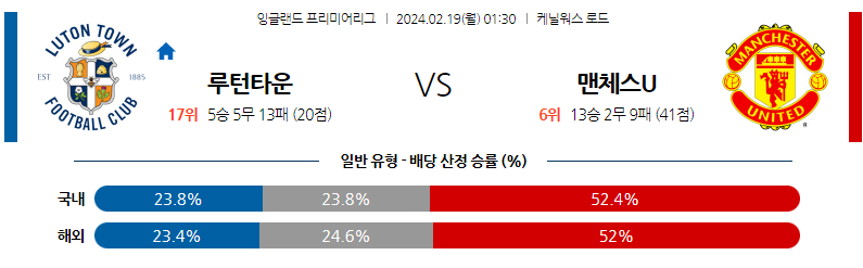 [킹콩티비] 루턴타운 맨유 분석 2월19일 EPL 스포츠중계