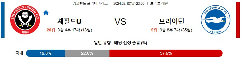 [킹콩티비] 셰필드유나이티드 브라이턴 분석 2월18일 EPL 스포츠중계
