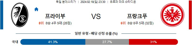 [킹콩티비] 프라이부르크 프랑크부르트 분석 2월18일 분데스리가 스포츠중계