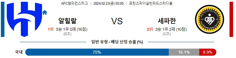 알힐랄 세파한 축구분석