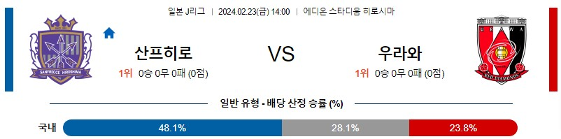[킹콩티비] 히로시마 우라와레드 분석 2월23일 J리그 스포츠중계