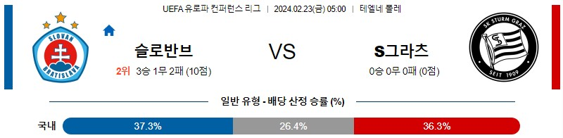 [킹콩티비] 브라티슬라바 슈투름그라츠 분석 2월23일 유로파컨퍼런스 스포츠중계