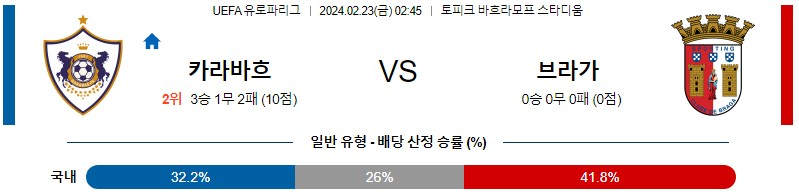 [킹콩티비] 카라바흐 브라가 분석 2월23일 유로파 스포츠중계