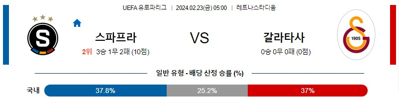 [킹콩티비] 스파르타프라하 갈라타사라이 분석 2월23일 유로파 스포츠중계