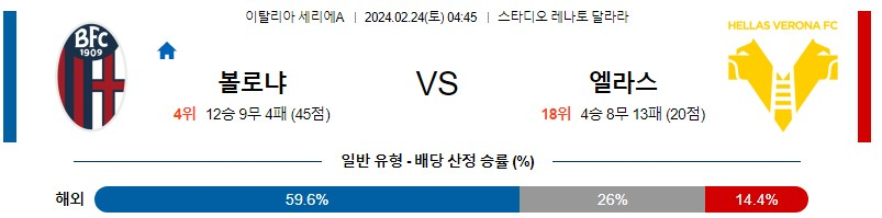 [킹콩티비] 볼로냐 엘라스베로나 분석 2월24일 세리에A 스포츠중계