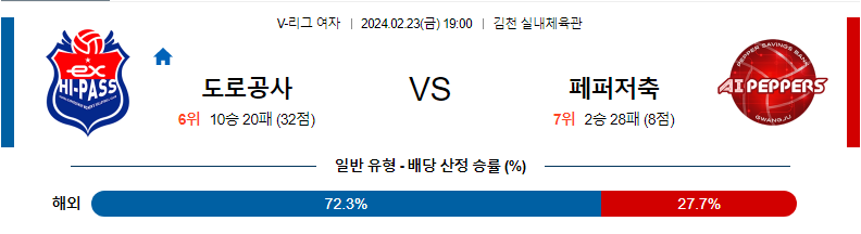 도로공사 페퍼저축은행 2월23일