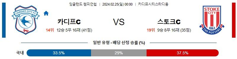 [킹콩티비] 카디프시티 스토크시티 분석 2월25일 챔피언쉽 스포츠중계