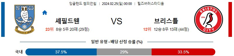 [킹콩티비] 셰필드웬즈데이 브리스톨 분석 2월25일 챔피언쉽 스포츠중계