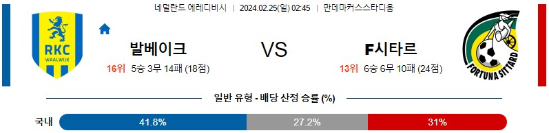 [킹콩티비] 발베이크 시타르트 분석 2월25일 에레디비시 스포츠중계