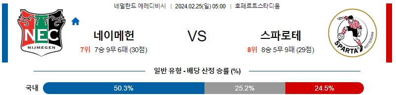 [킹콩티비] 네이메헌 스파르타 분석 2월25일 에레디비시 스포츠중계