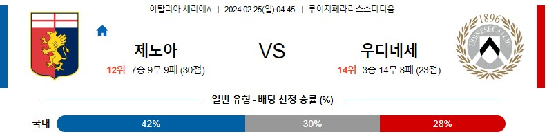 [킹콩티비] 제노아 우디네세칼초 분석 2월25일 세리에A 스포츠중계
