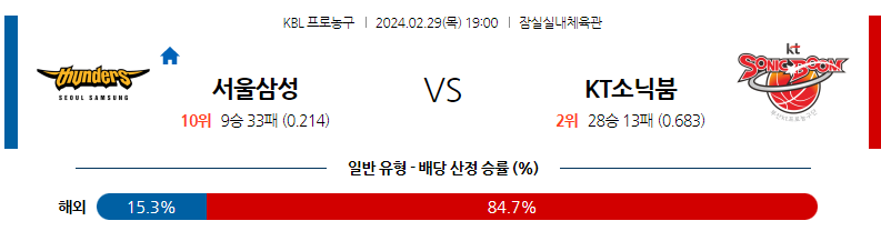 [킹콩티비] 서울삼성 수원KT 분석 2월29일 KBL 스포츠중계