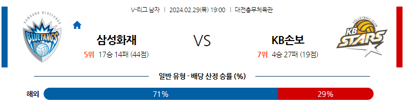 [킹콩티비] 삼성화재 KB손해보험 분석 2월29일 KOVO 스포츠중계