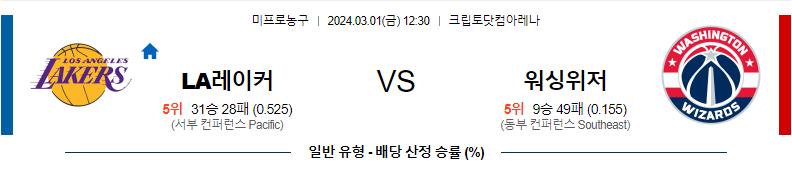 [킹콩티비] LA레이커스 워싱턴 분석 3월1일 NBA 스포츠중계