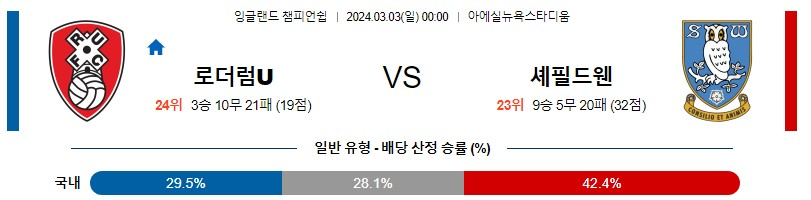 로더럼유나이티드 셰필드웬즈데이 3월3일