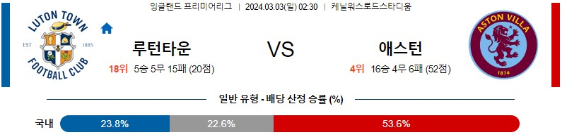 [킹콩티비] 루턴타운 빌라 분석 3월3일 프리미어 스포츠중계