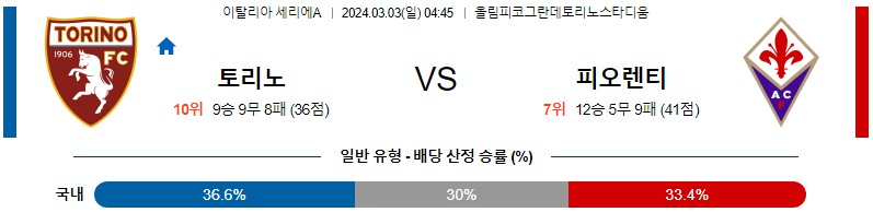 [킹콩티비] 토리노 피오렌티나 분석 3월3일 세리에A 스포츠중계