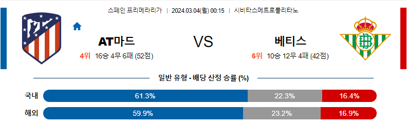 [킹콩티비] 아틀레티코 베티스 분석 3월4일 라리가 스포츠중계