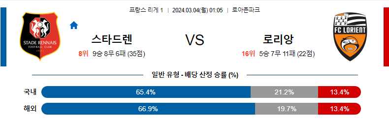 [킹콩티비] 스타드렌 로리앙 분석 3월4일 리그앙 스포츠중계