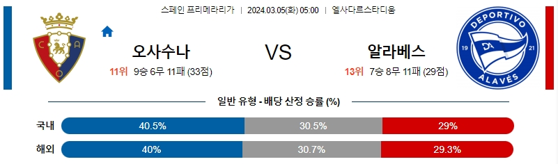 [킹콩티비] 오사수나 알라베스 분석 3월5일 라리가 스포츠중계