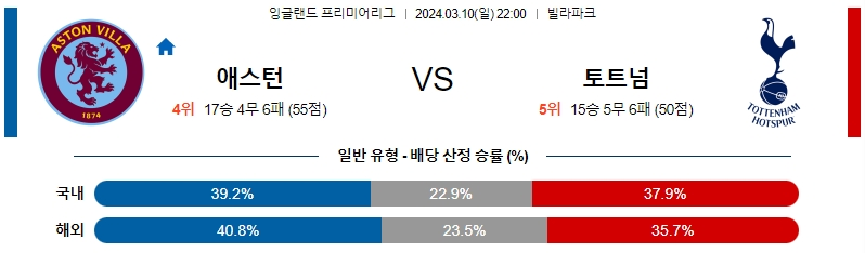[킹콩티비] 애스턴빌라 토트넘 분석 3월10일 프리미어리그 스포츠중계