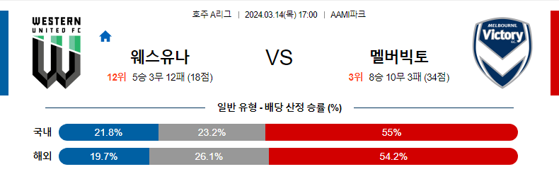 [킹콩티비] 웨스턴유나이티드 멜버른빅토리 분석 3월14일 A리그 스포츠중계