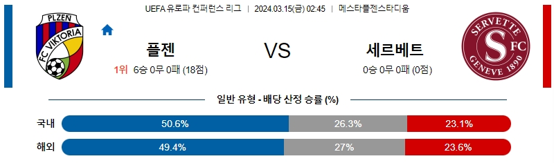 [킹콩티비] 플젠 세르베테 분석 3월15일 컨퍼런스리그 스포츠중계