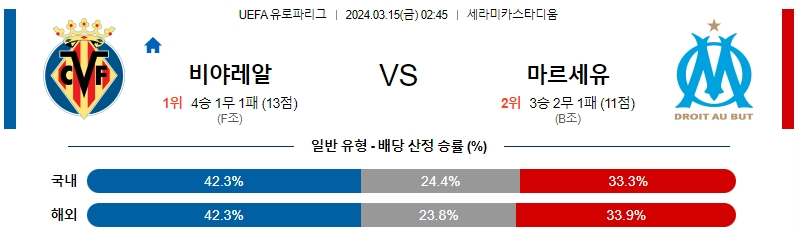 [킹콩티비] 비야레알 올림피크마르세유 분석 3월15일 유로파리그 스포츠중계