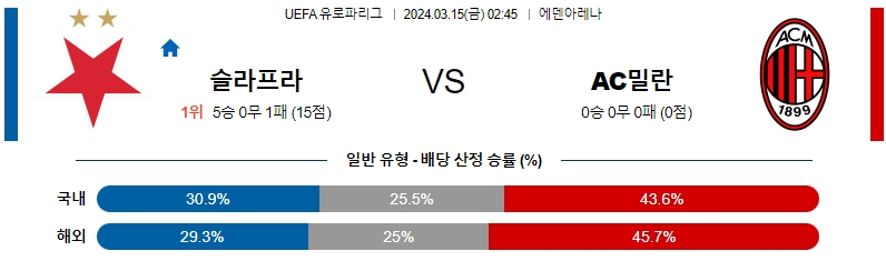 [킹콩티비] 슬라비아프라하 AC밀란 분석 3월15일 유로파리그 스포츠중계