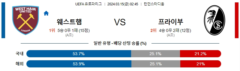 웨스트햄 프라이부르크 3월15일
