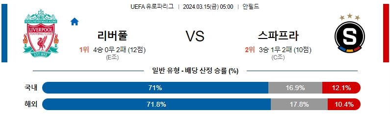 [킹콩티비] 리버풀 스파르타프라하 분석 3월15일 유로파리그 스포츠중계