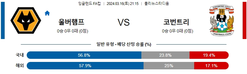 [킹콩티비] 울버햄튼 코번트리시티 분석 3월16일 잉글랜드FA컵 스포츠중계