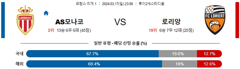 [킹콩티비] AS모나코 FC로리앙 분석 3월17일 리그앙 스포츠중계